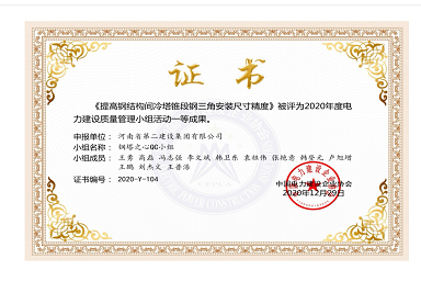 哈尔滨维思资源开发有限公司国电双维电厂新建工程项目部被总包单位评为“2020年度质量管理先进单位”